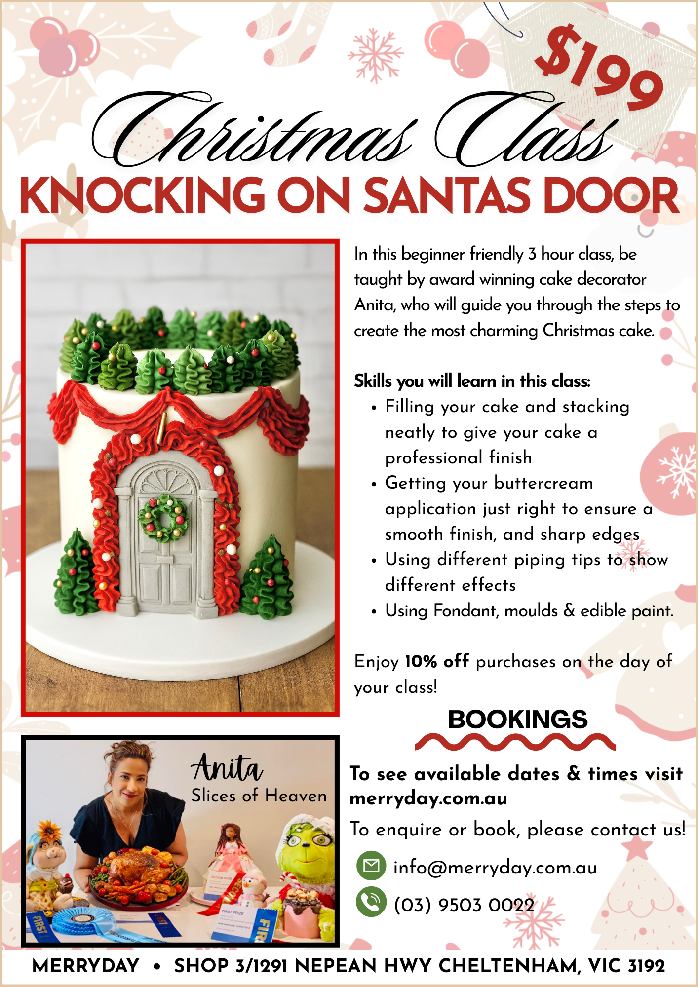 In this beginner friendly 3 hour class, be taught by award winning cake decorator Anita, who will guide you through the steps to create the most charming Christmas cake.